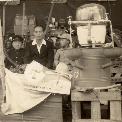 ―――――この時代の最先端技術「手押しポンプ」の販売、取付工事を主要業務とし各地の展示即売会に出展