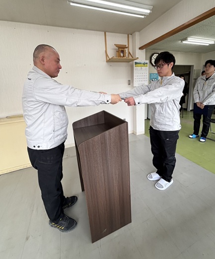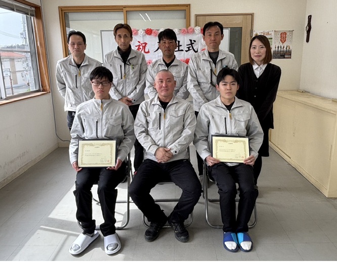 令和7年4月1日に2名の新入社員の入社式を行いました。