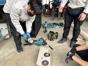 ディスクグラインダーとは、高速回転する円盤状の砥石を使って金属や木材、コンクリートなどの研削・研磨・切断を行う電動工具です