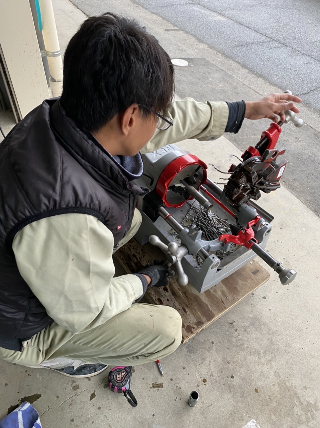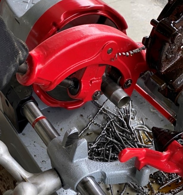鋼管を加工する機械でニップルという材料を作っています