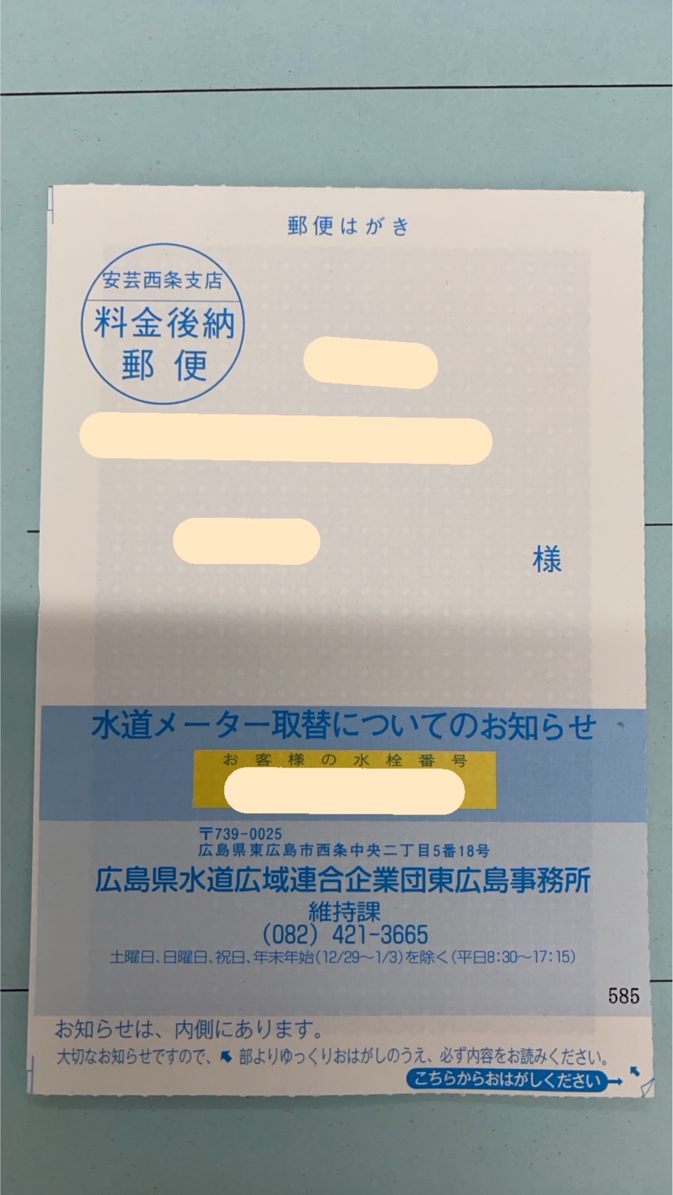 もし水道局からハガキが届きましたら早めに内容をご確認ください