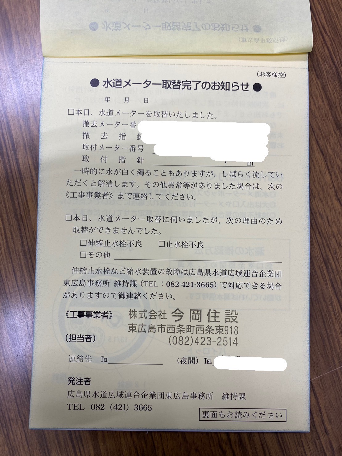 <作業後に完了のお知らせをポストに入れます>