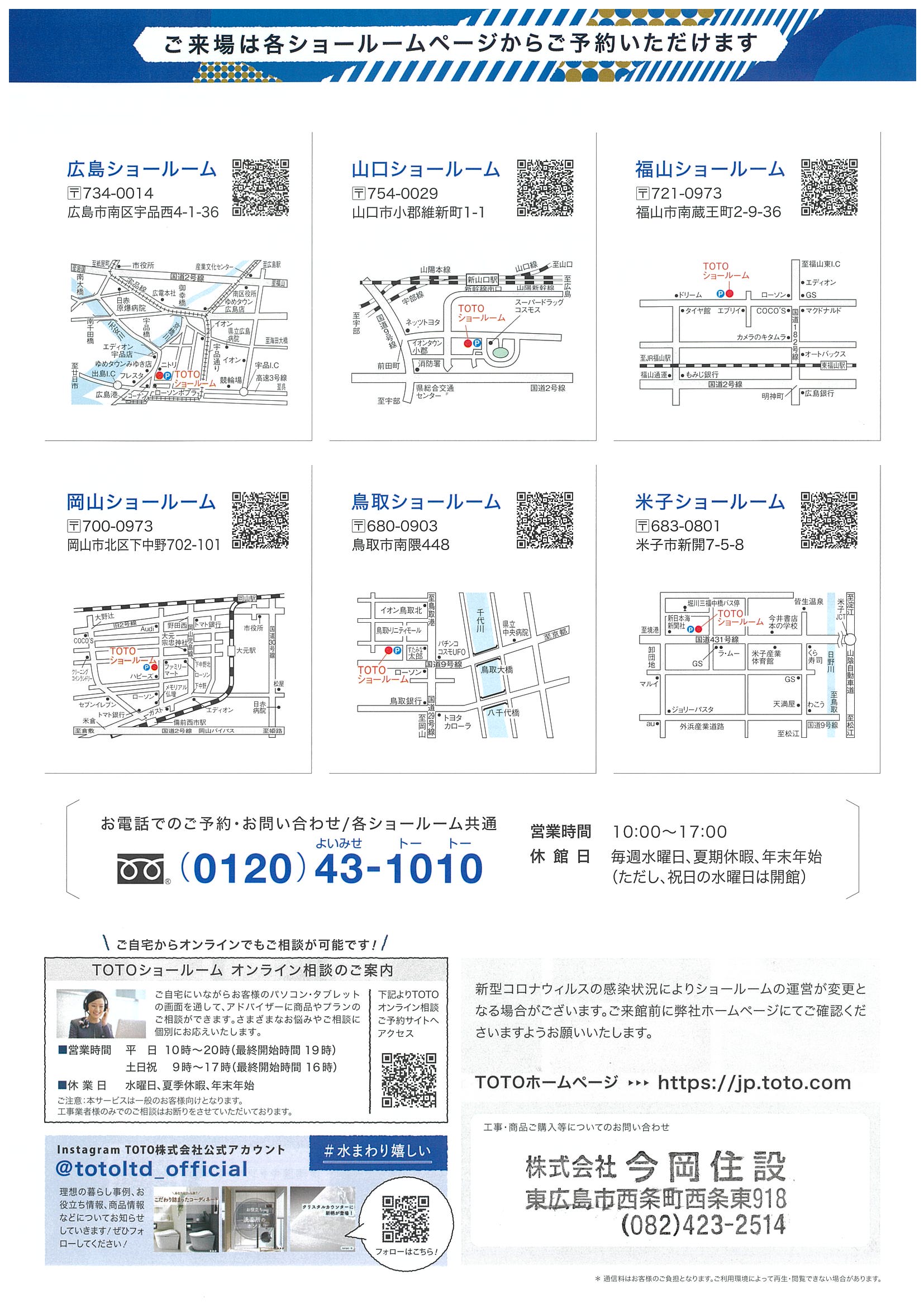 期間中に、TOTO広島ショールームご来館またはオンライン相談にて