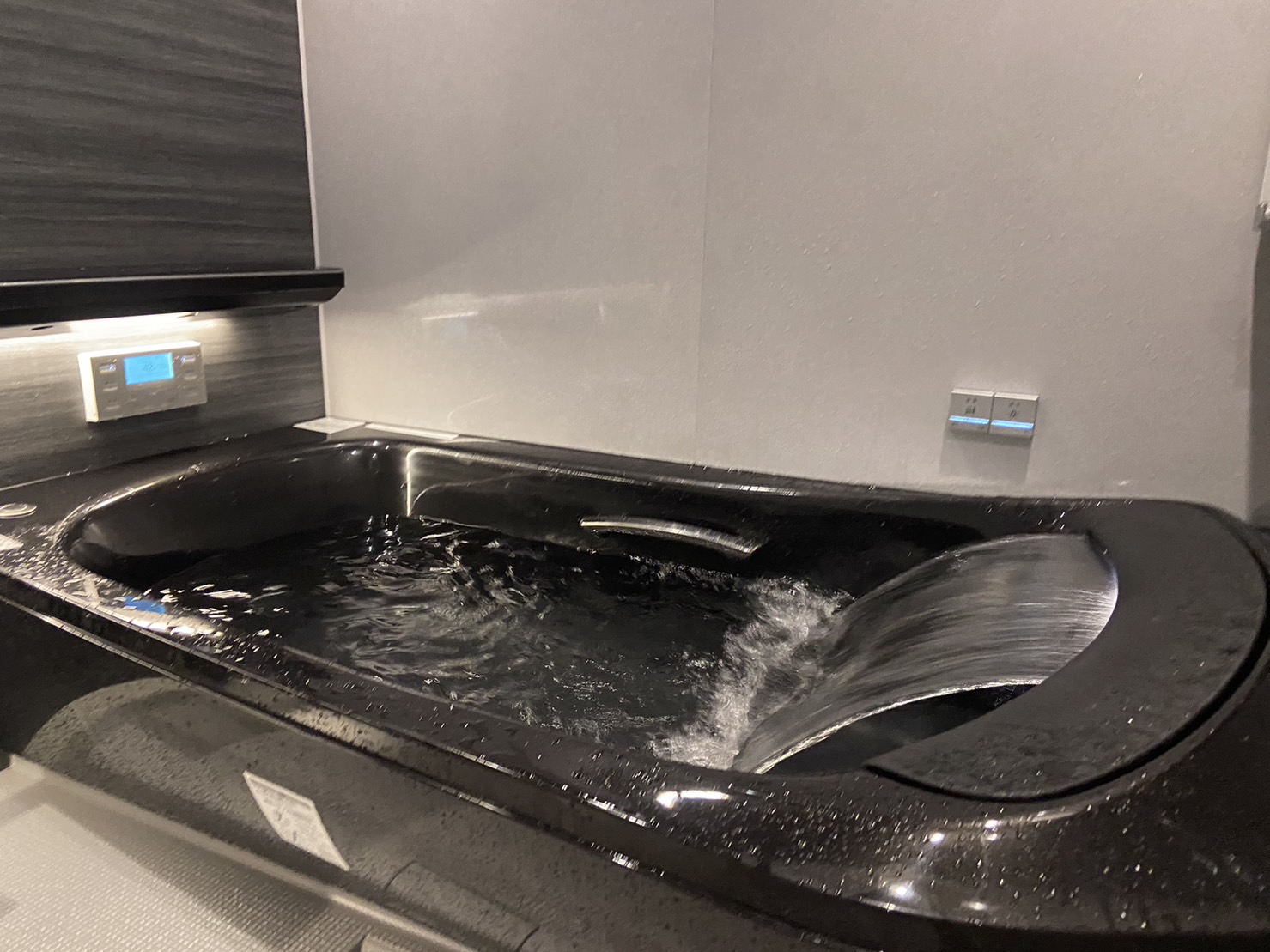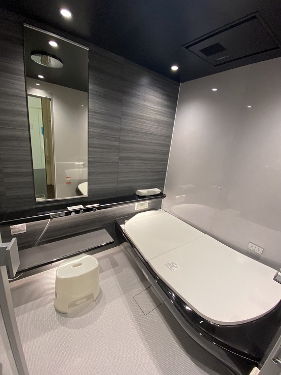 今回は特別に新商品のシステムバスの入浴体験をしました
