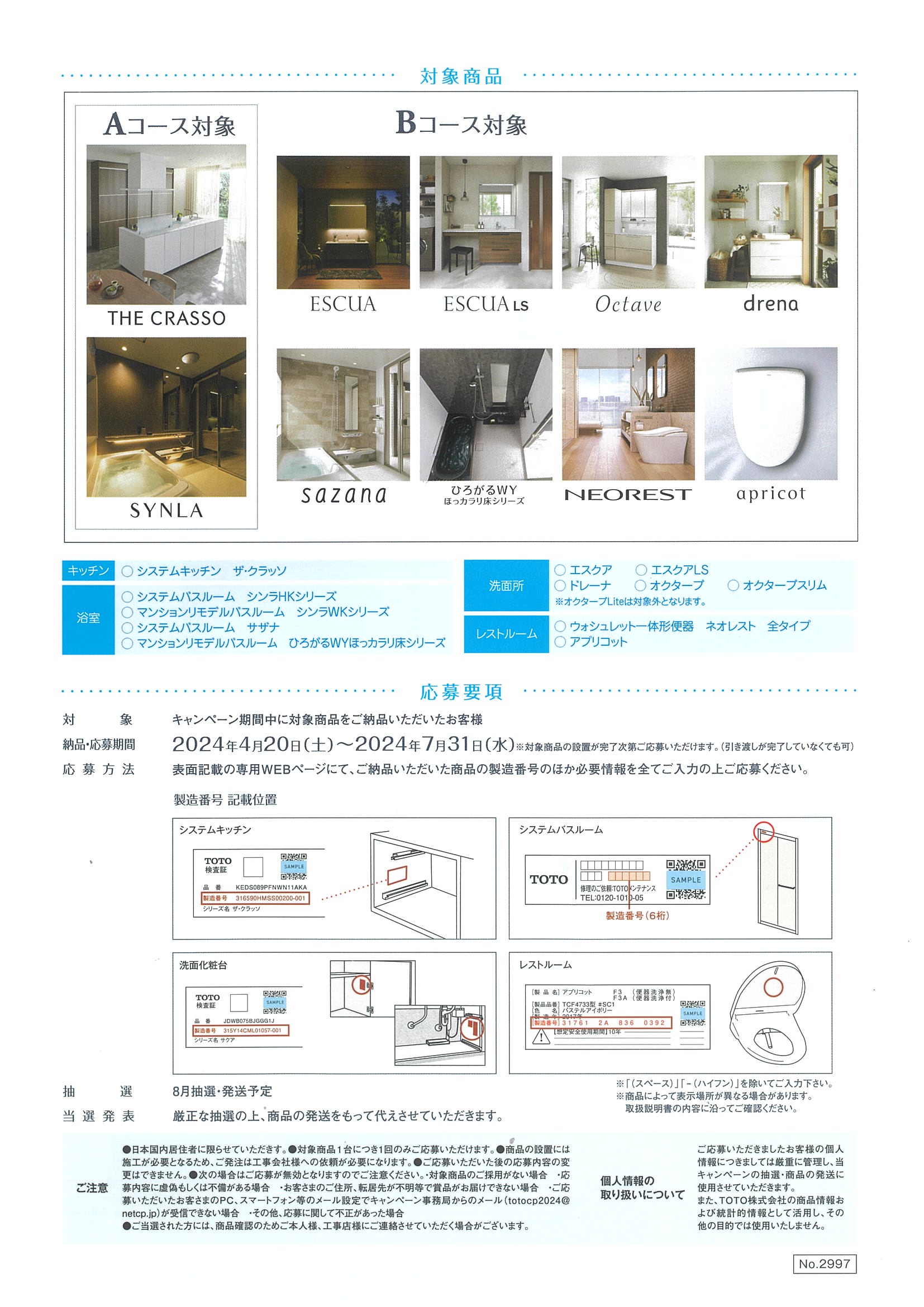 2024年4月20日~7月31日の期間中チラシ対象商品をご納品のお客様に抽選で豪華景品が当たる!